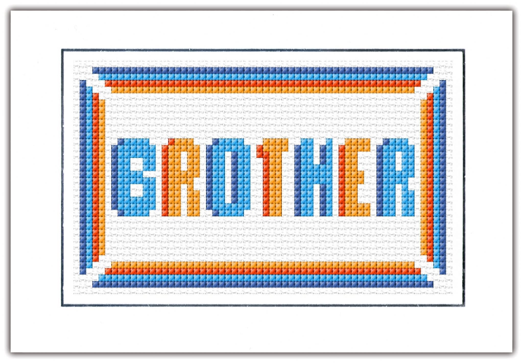 Nephew, Blue + Orange Block Wording ~ Plain/Birthday Cross Stitch Card Kit 6" x 4"
