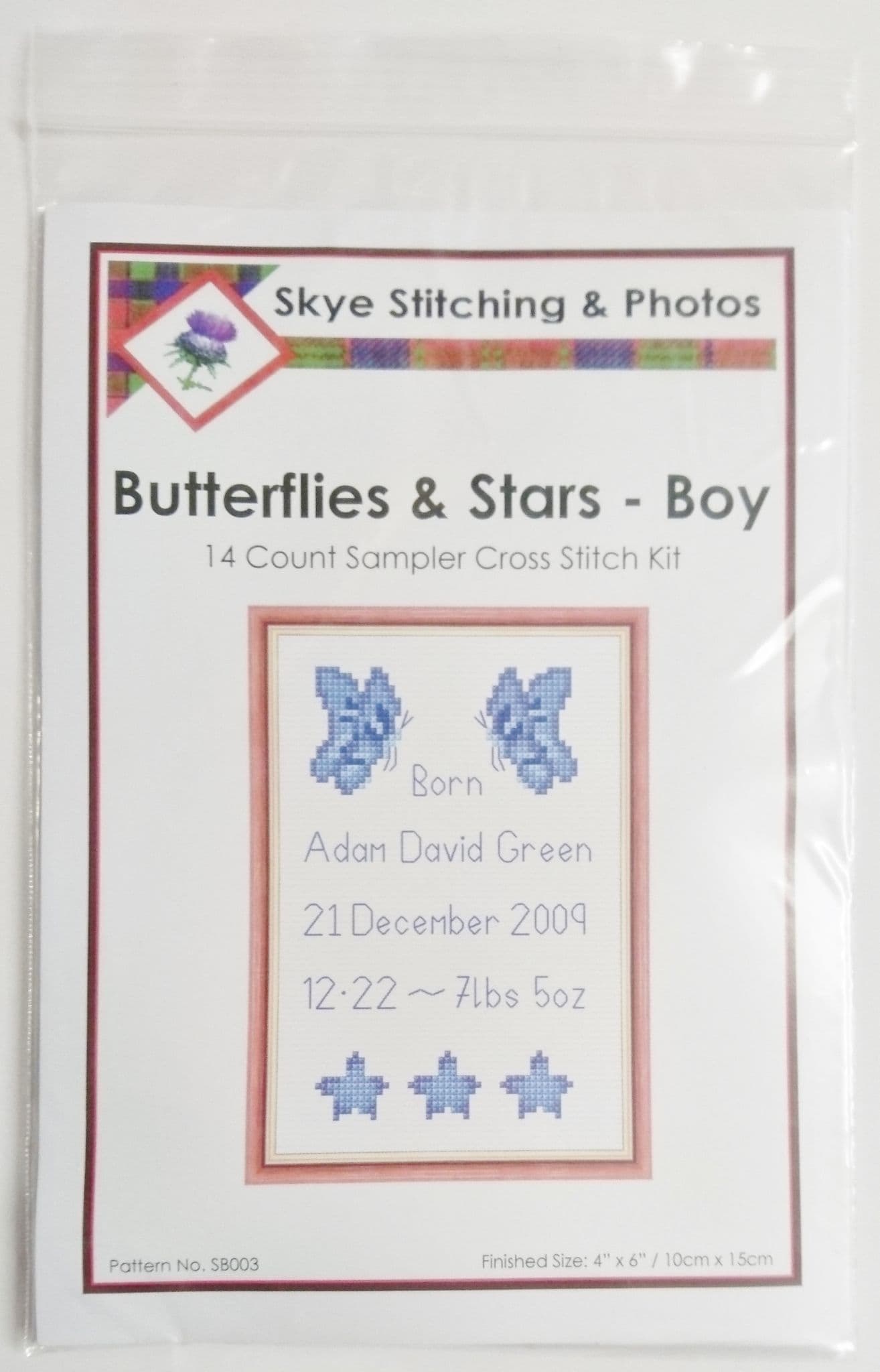 Butterflies & Stars, Border ~ Baby Boy/Girl Birth Sampler/Announcement ~ 14 Count Cross Stitch Kit