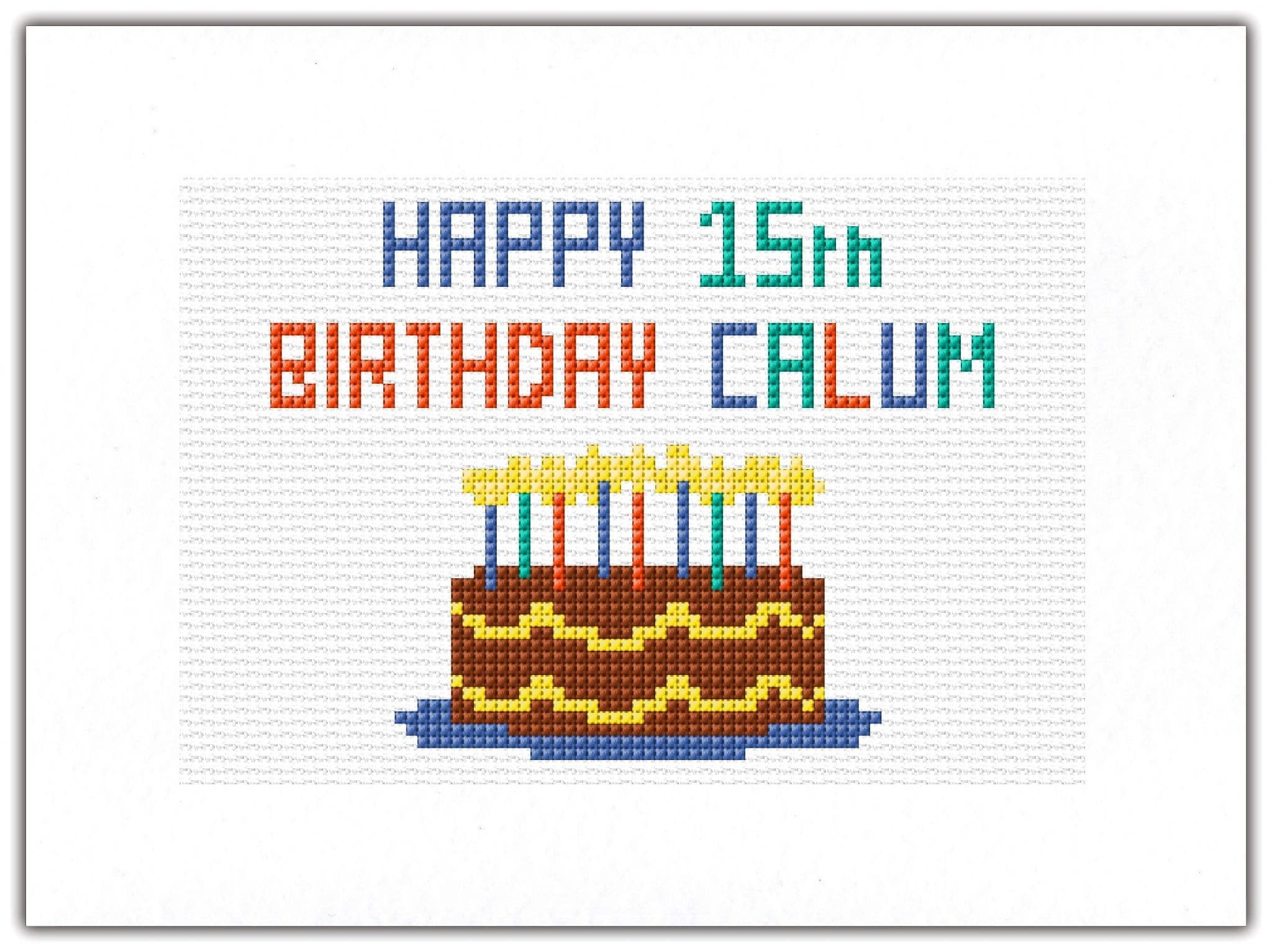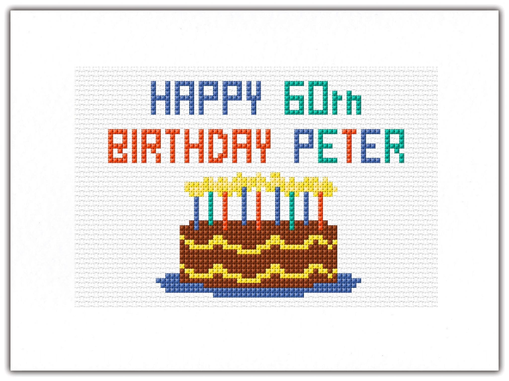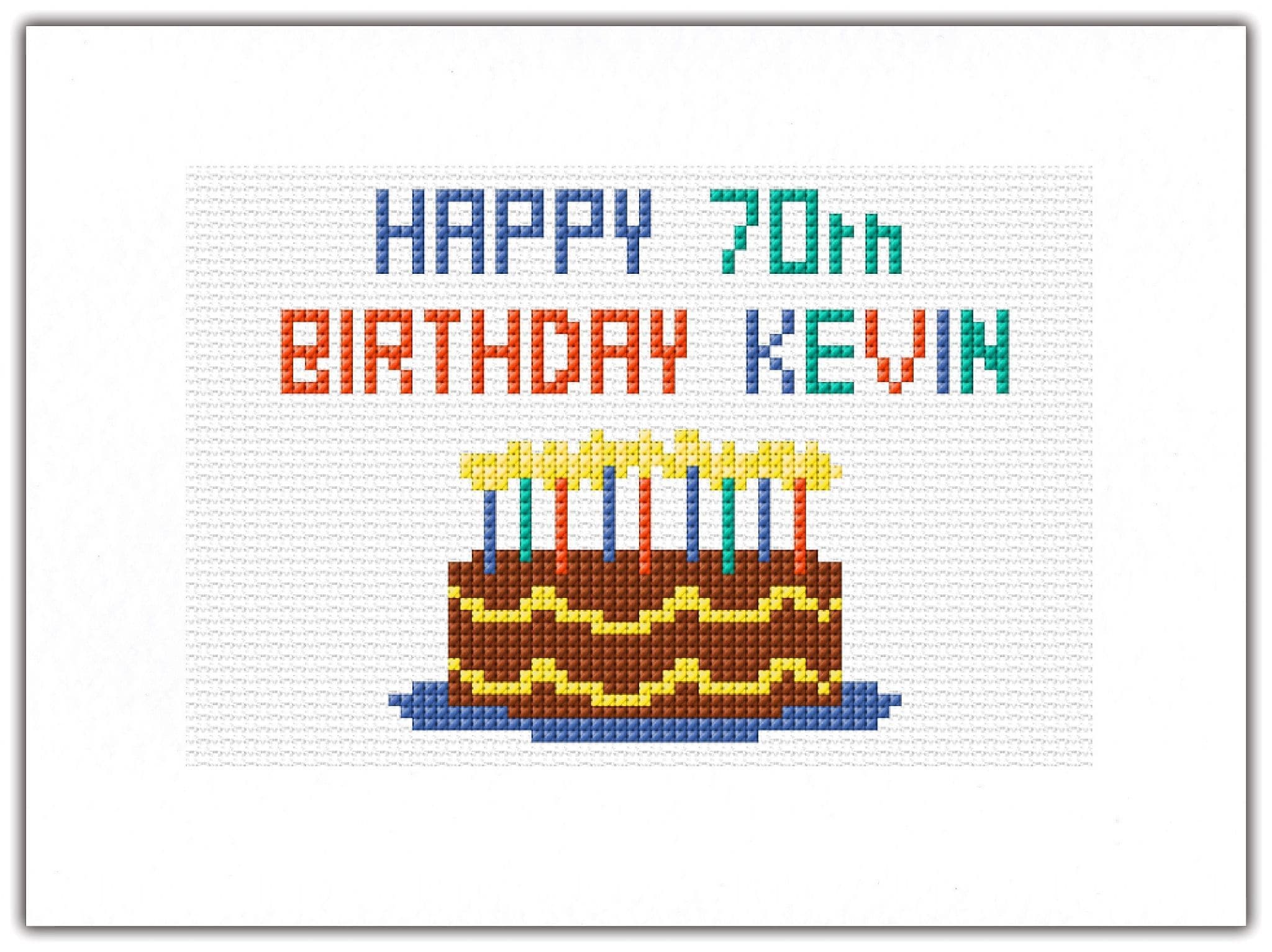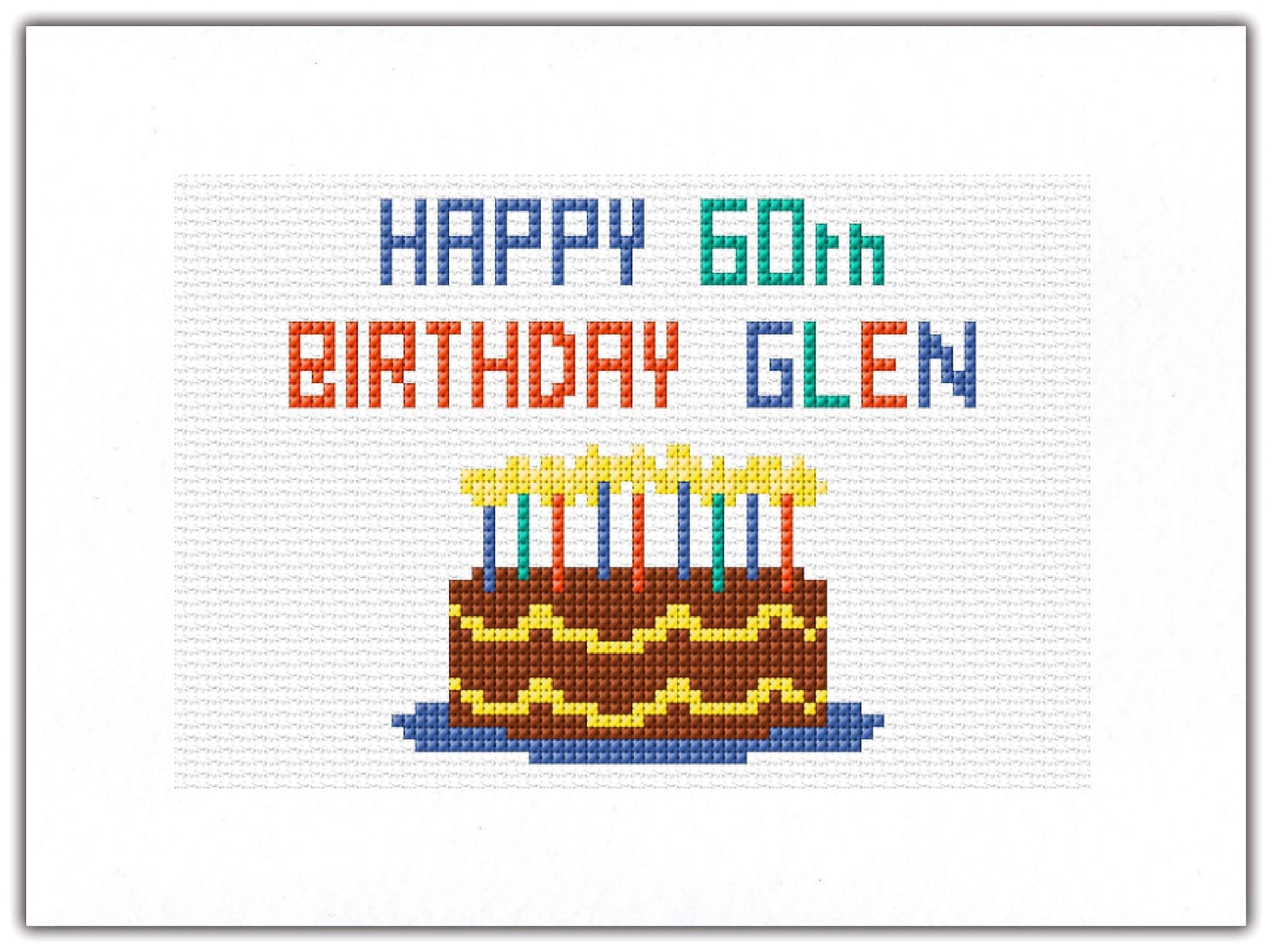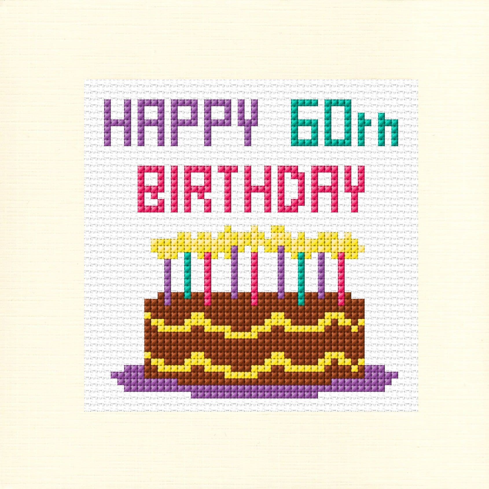 Cake & Candles "Happy 40/50/60/70/80th Birthday" Card ~ Purple or Blue Cross Stitch Kit 5.5" x 5.5"