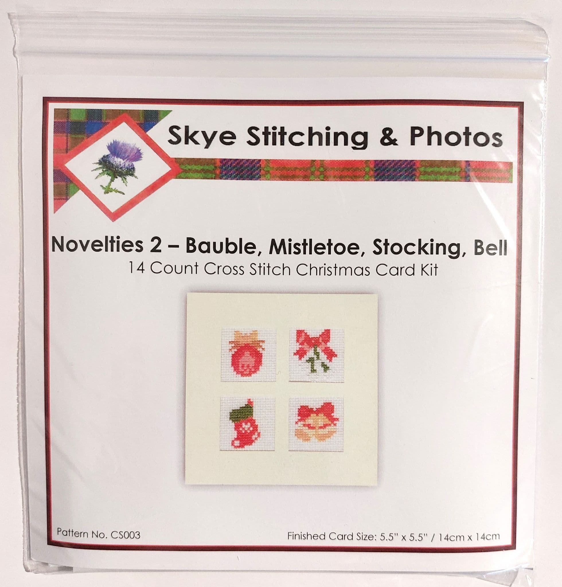 Christmas Novelties 2 (Bauble, Mistletoe, Stocking & Bell), Square Cross Stitch Card Kit