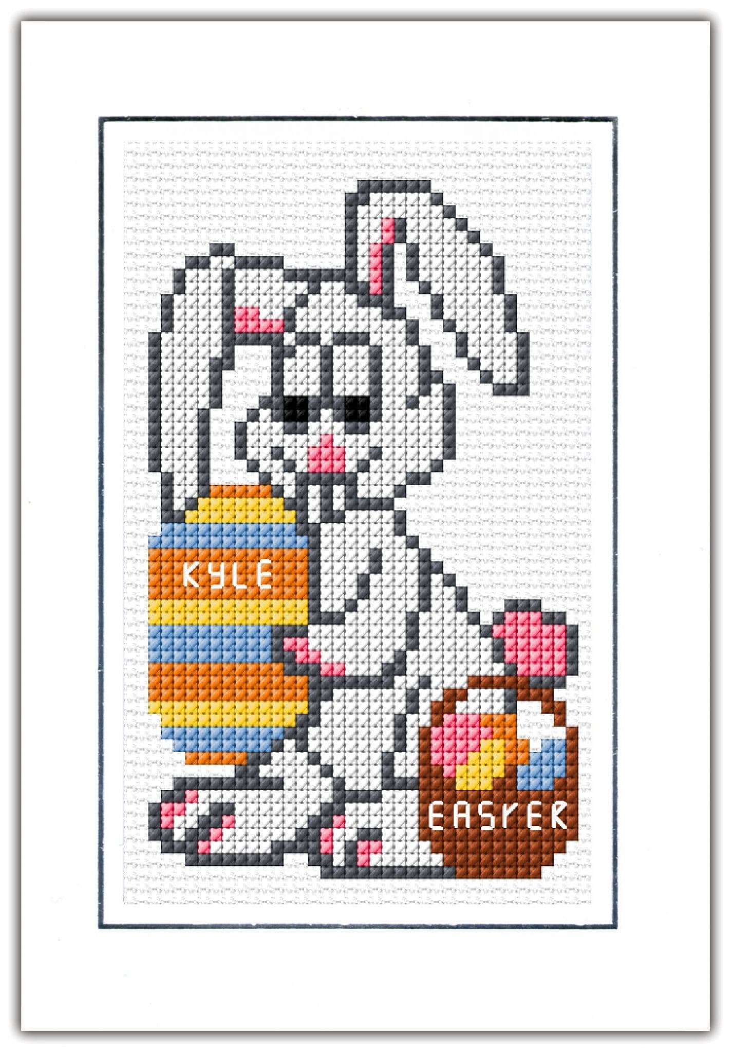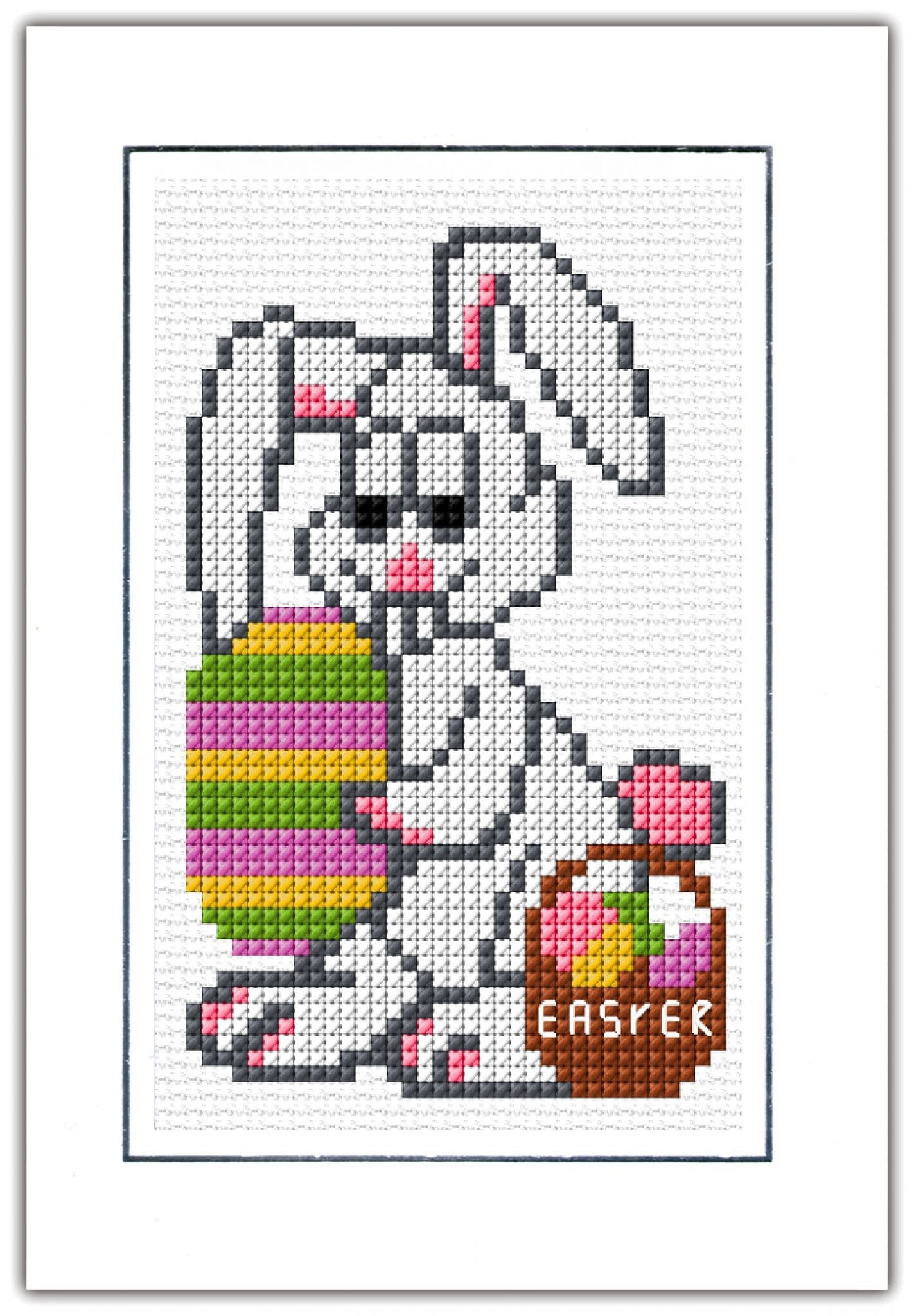 Easter Bunny & Egg Basket Card, Stripy Egg ~ 14 Count Cross Stitch Kit