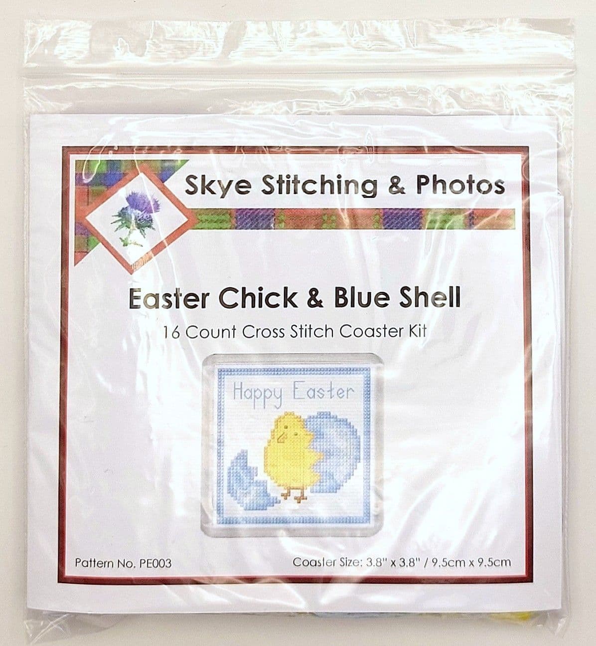 Easter Chick & Blue Shell - 16 Count Cross Stitch Coaster Kit