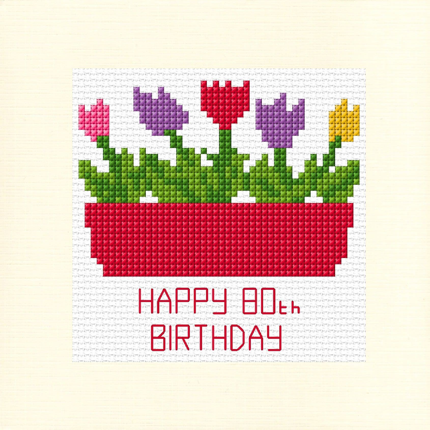 3 Flower Pots "MUM" ~ Happy 60/70/80/90th Birthday Day Cross Stitch Card Kit 5.5" x 5.5"