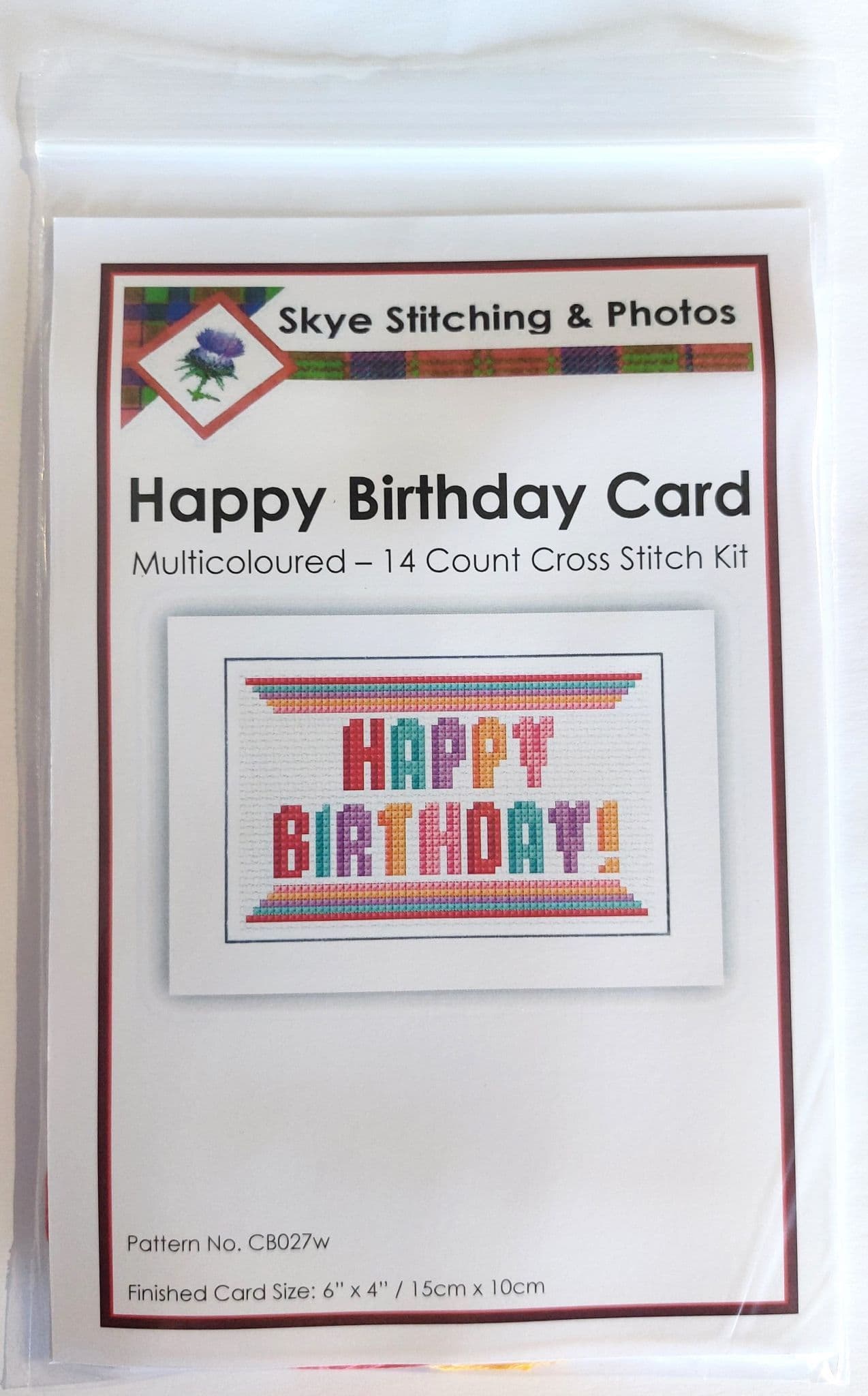 Happy Birthday, Multicoloured Block Wording ~ Cross Stitch Card Kit 6" x 4"