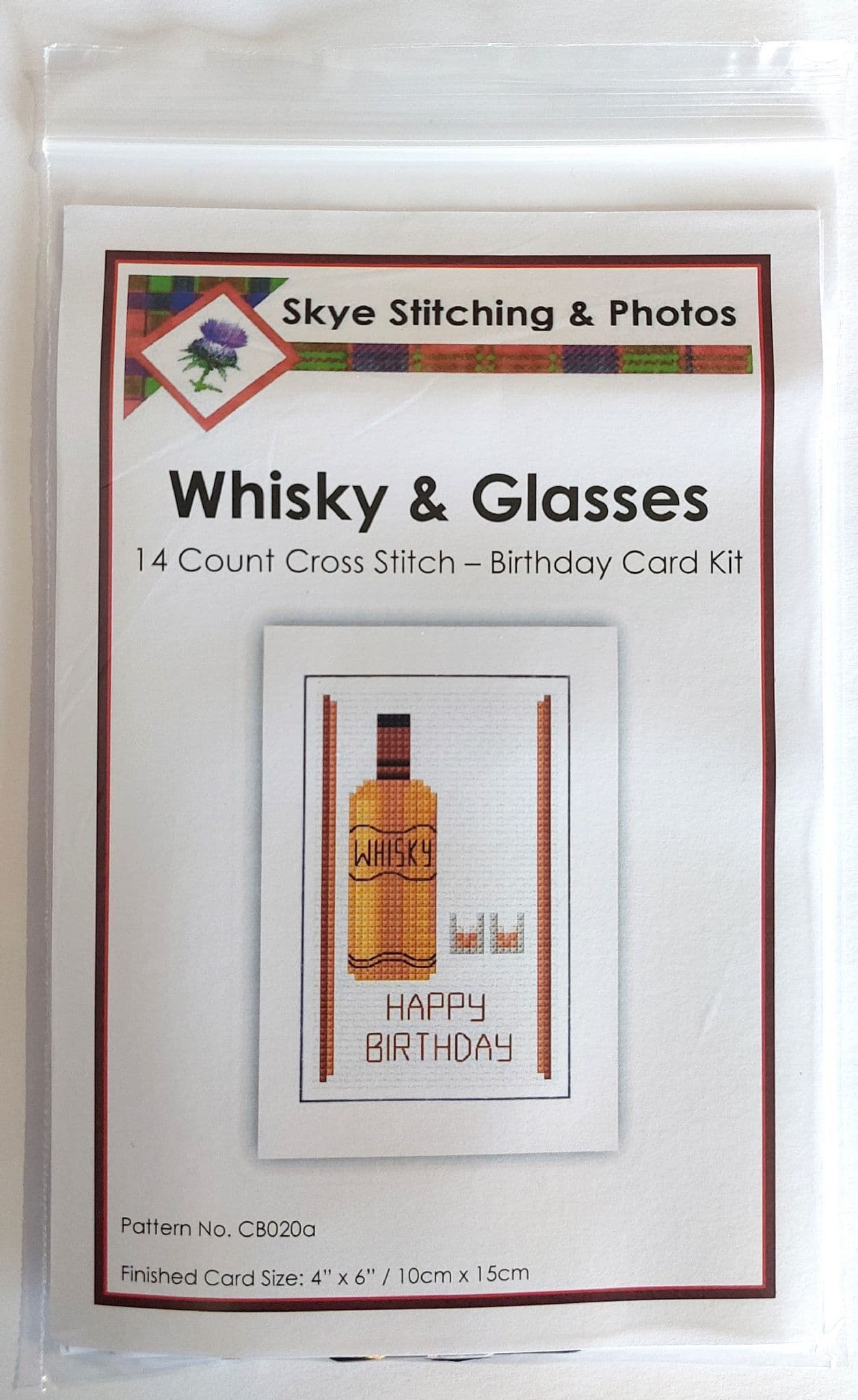 Happy Birthday, Whisky & Glasses: Cross Stitch A6 Card Kit