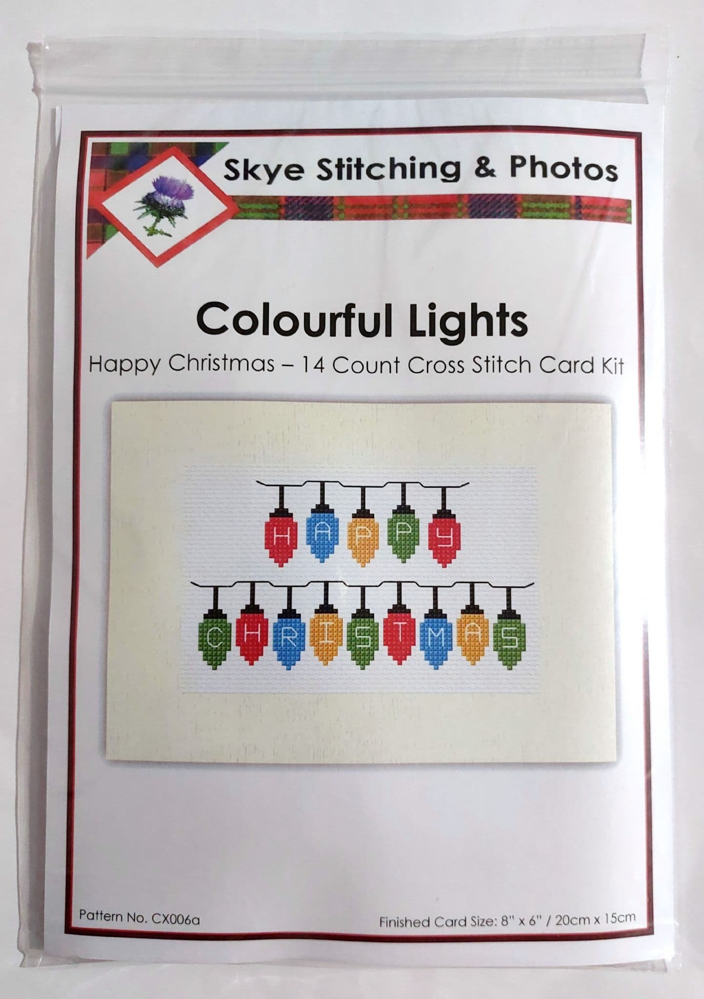 Happy Christmas, Colourful Lights ~ Cross Stitch 8" x 6" A5 Card 14ct Kit