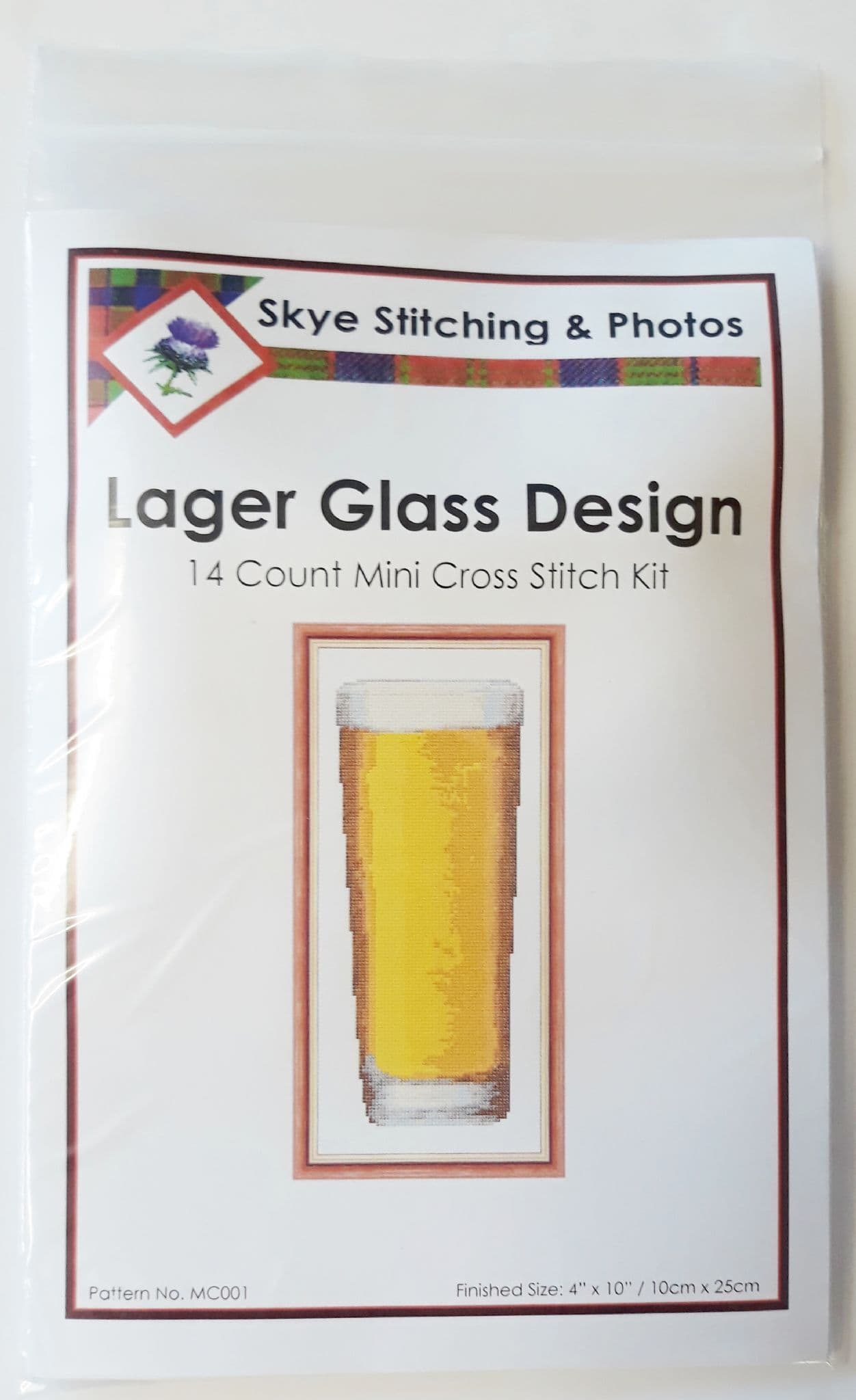 Lager / Beer Glass ~ Mini Cross Stitch Starter/Beginner Kit, 4" x 10"