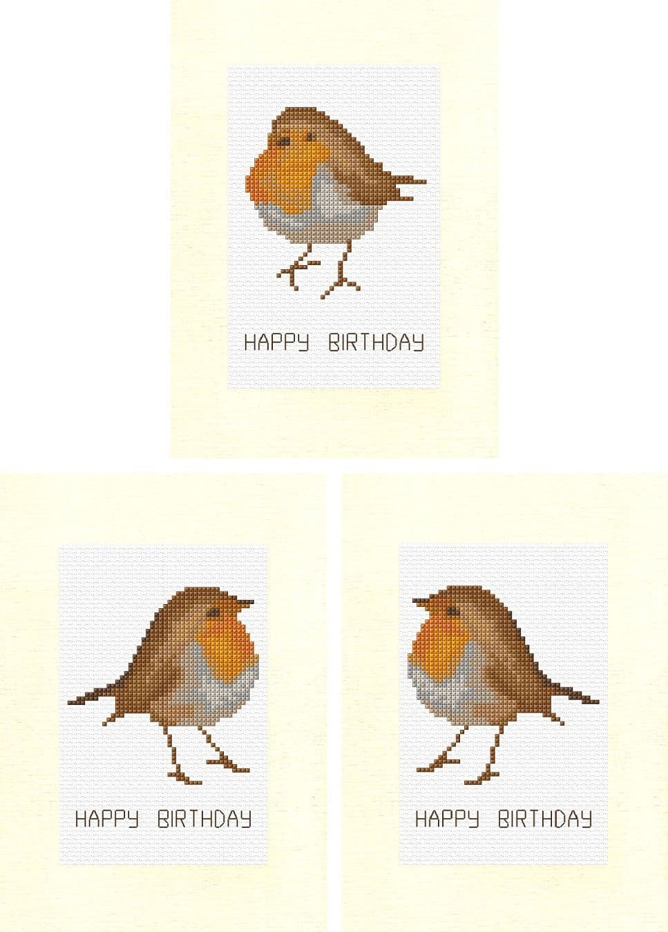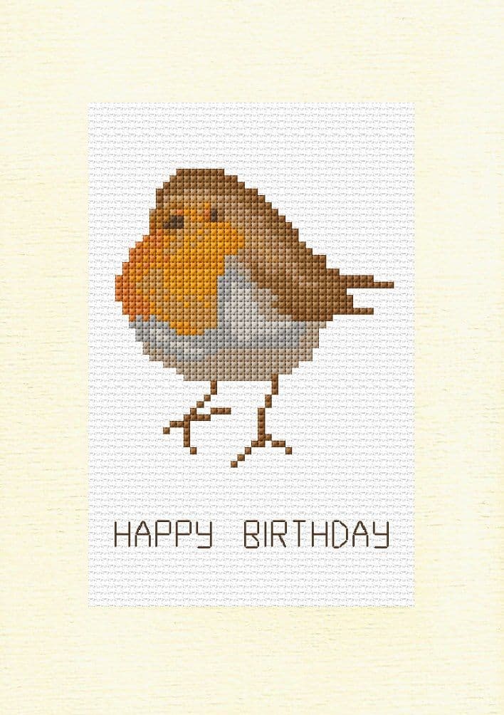 Proud Standing Robins "Happy Birthday" A5 Card ~ 14 Count Cross Stitch Kit