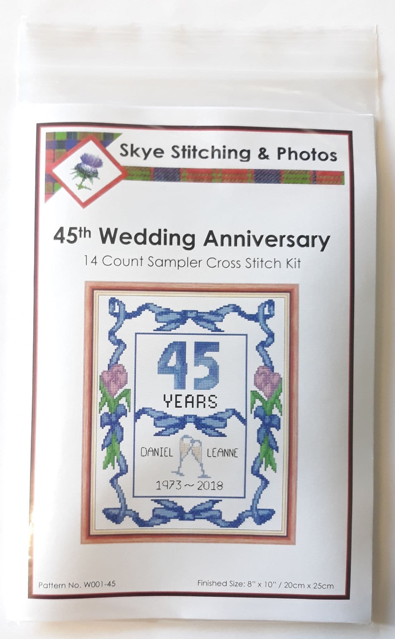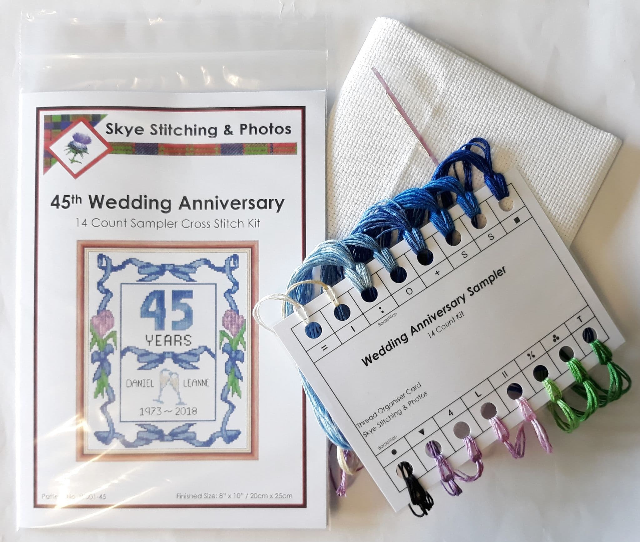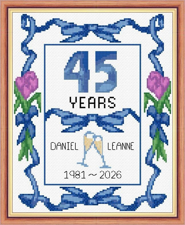 Rose, Sapphire Blue "Happy 45th Anniversary" Card, 14 Count Cross Stitch Kit