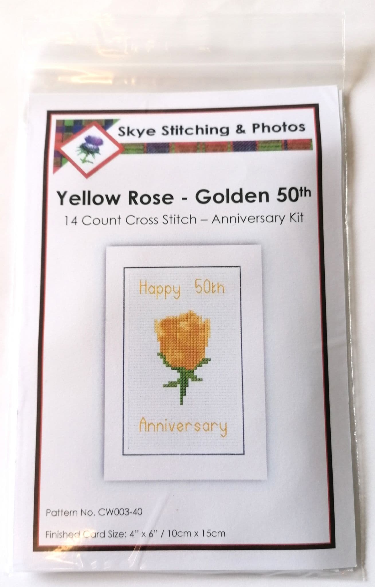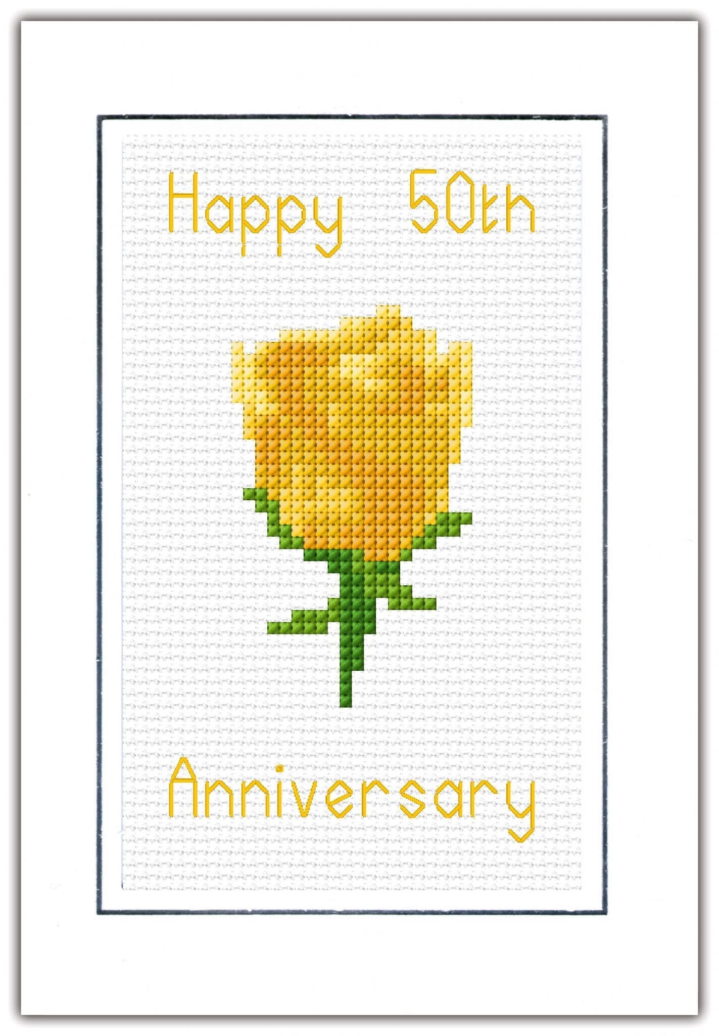 Rose, Golden Yellow "Happy 50th Anniversary" Card, 14 Count Cross Stitch Kit